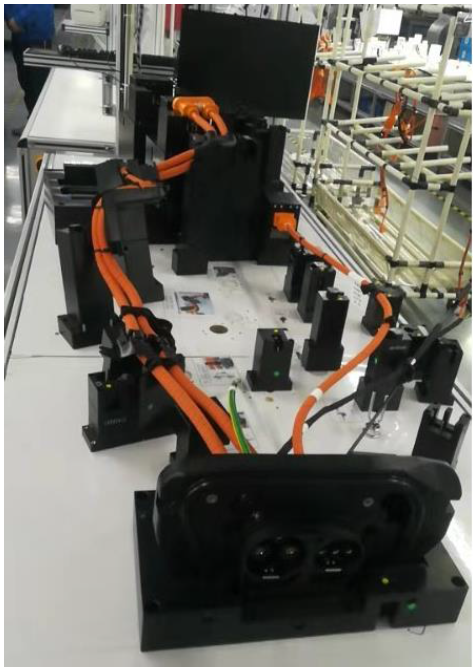 高压线束 因其线径较大不易弯折,故装车时要求尺寸特别严格,线束上的支架、铁支架、固定卡钉、铝管等必须严格按照装车尺寸进行固定。